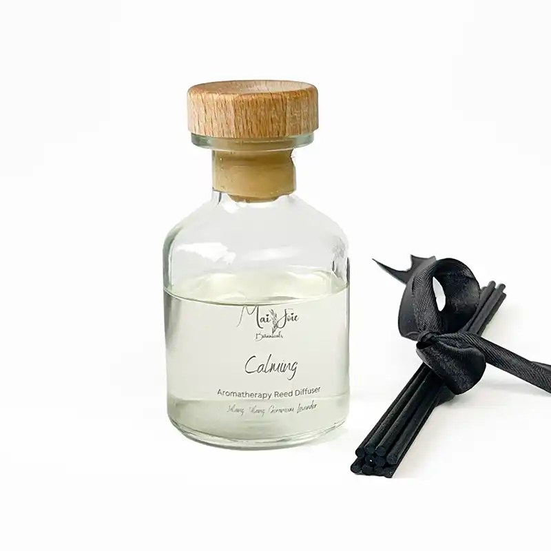 My Calming Aromatherapy Reed Diffuser, infused with Ylang Ylang, Geranium, and Lavender essential oils, releases a soothing floral aroma that promotes peace and relaxation.