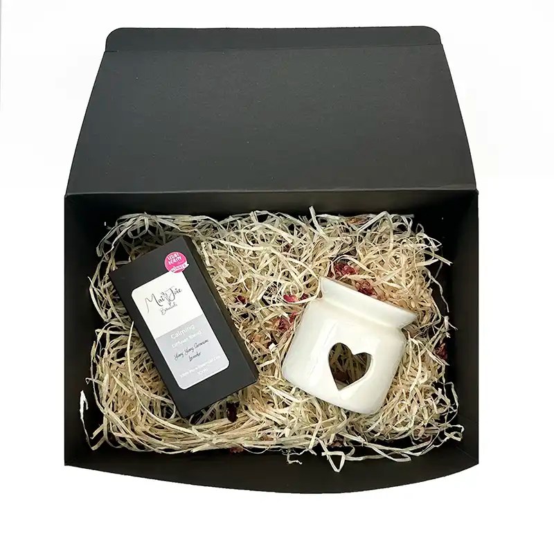 All items are packaged in an eco-friendly black gift box with natural wood straw filler, making this a thoughtful and sustainable gift for any occasion.