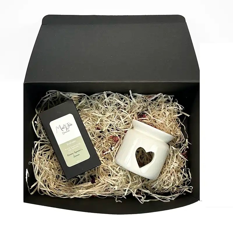 Add a touch of charm to your aromatherapy rituals with the Ceramic Heart Burner Gift Box. Featuring a beautiful ceramic heart oil burner and a Mai Joie Essential Oil Blend, this eco-friendly gift box is perfect for creating a naturally uplifting or calming atmosphere in your home.