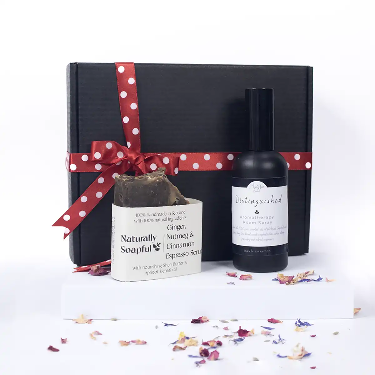 The Distinguished Aromatherapy Gift Set with Espresso Coffee Scrub Soap Bar has been created for those who appreciate warm earthy aromas and a sense of grounded sophistication. This pairing brings together my Distinguished Room Spray alongside a beautifully handmade Espresso Coffee Scrub Soap Bar, offering a natural ritual that feels both comforting and revitalising.