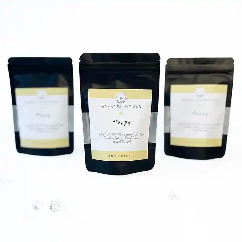 Happy Pure Botanical bath Salts are Infused with 100% Pure Essential Oils of Lime, Grapefruit, Lemon & Sweet Orange. To uplift the spirit.
