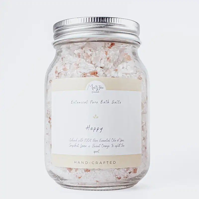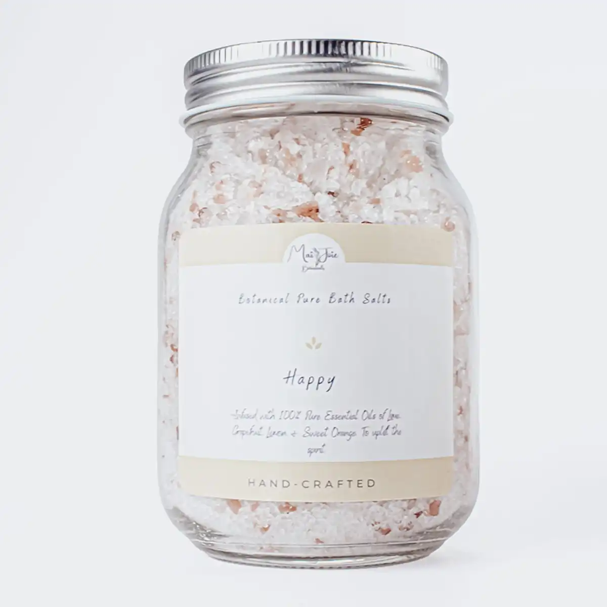 Indulge in a bath that brings joy to your soul – with Mai Joie’s Happy Pure Botanical Bath Salts, every soak becomes a celebration of life and happiness. So, treat yourself to the ultimate mood-booster and discover the transformative power of our botanical-infused bath salts.