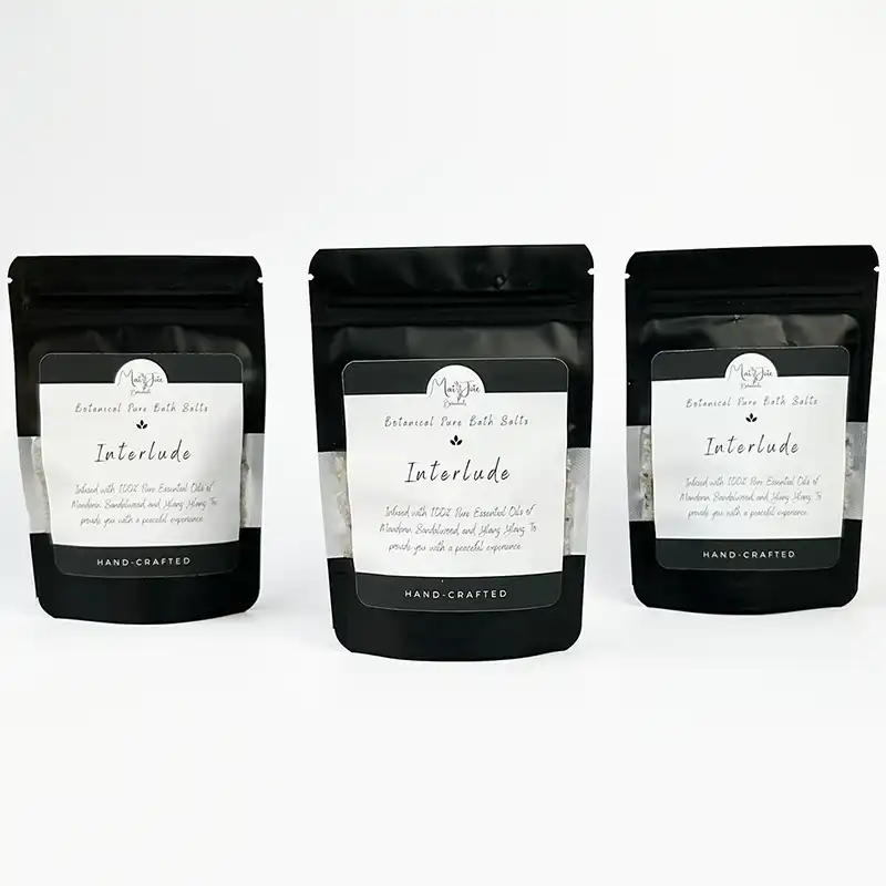 Step into a haven of serenity and self-care with Mai Joie’s Interlude Pure Botanical Bath Salts. In today’s fast-paced world, finding moments of calm is essential for nurturing your well-being. Our luxurious bath salts, infused with Mandarin, Sandalwood, and Ylang Ylang essential oils, offer a sanctuary where you can escape the chaos and indulge in much-needed relaxation.