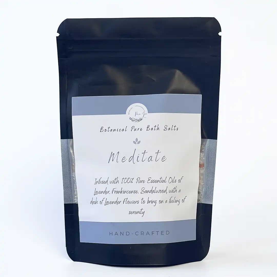 These Pure Botanical Bath Salts are generously infused with our own unique blends of essential oils, these calming salts are infused with our Meditate Essential Oil Blend
