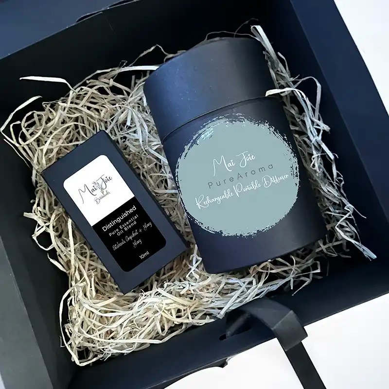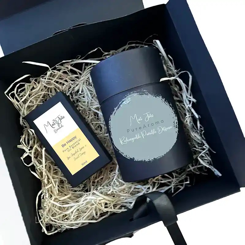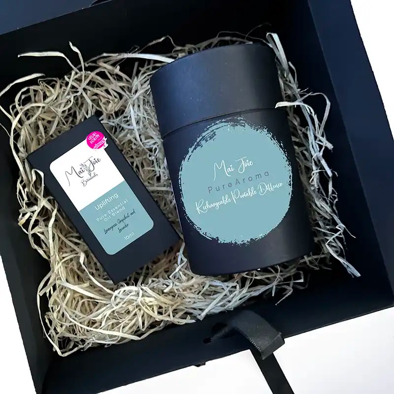 Give the gift of pure relaxation and personal well-being with our luxurious Portable Diffuser Aromatherapy Gift Box. Perfectly designed for those who cherish a moment of calm or need an uplifting boost, this special set combines our elegantly portable Pure Aroma diffuser with a bespoke choice of one of our most beloved essential oil blends. With this selection, you can truly personalise the gift, making it uniquely suited to any personality or preference.