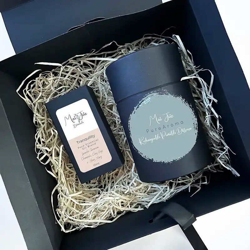 Discover the gift of pure relaxation with our new Portable Diffuser aromatherapy gift box. Choose from a selection of blissful blends—from the calming embrace of Nighttime Tranquility to the festive warmth of Blissful Winter—and pair it with our sleek, portable Pure Aroma diffuser. Perfect for gifting moments of serenity and scent wherever life takes them.